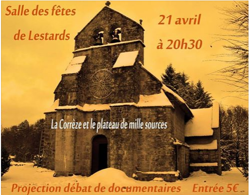 Le samedi 21 avril à 20h30 à Lestards, Michel Peyrat (sociologue passionné par la Corrèze) projette un documentaire sur la Corrèze et le Plateau de Millevaches. Cette projection sera suivi d'un débat. Entrée 5€